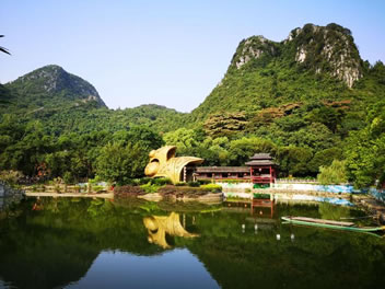 劉三姐大觀園原名桂林劉三姐景觀園,位于桂林城區(qū)西部獅子巖,坐落在風(fēng)景秀麗的桃花江畔,東靠西山,西望甲山,前臨漓江的支流桃花江。景區(qū)以壯族歌仙劉三姐命名,是一座展示劉三姐文化及廣西少數(shù)民族文化經(jīng)典的主題游園,在這里游客可以零距離領(lǐng)略和體驗(yàn)劉三姐文化及廣西少數(shù)民族文化精粹和樂趣。園外山清水秀,倒影如畫,有桂林古八景“西峰夕照”、桂林續(xù)八景“陽(yáng)江秋月”;園內(nèi)亭臺(tái)樓榭、峰峻洞幽,有桂林生態(tài)樂園之最百鳥園;有電影《劉三姐》的壯樓、莫府。