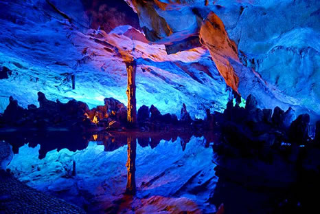 “桂林山水甲天下,蘆笛美景堪最佳。”蘆笛巖是桂林山水一顆璀璨的明珠,蘆笛巖位于光明山南側(cè)山腰,洞深240米,游程近500米,是一處景致高度集中、景物極盡造化的神奇游覽佳境。在這個奇妙的巖洞中,琳瑯滿目的鐘乳石、石筍、石柱、石幔、石花擬人狀物,惟妙惟肖,構成了三十多處景觀,有“紅羅寶帳”、“高峽飛瀑”、“盤龍寶塔”、“原始森林”、“簾外云山”、“水晶宮”等,可謂移步成景,步移景換。整個巖洞猶如一座用寶石、珊瑚、翡翠雕砌而成的宏偉、壯麗的地下宮殿。