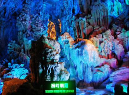 洞內(nèi)有大量奇麓多姿、玲瓏剔透的石筍、石乳、石柱、石幔、石花,琳瑯滿目,組成了獅嶺朝霞、紅羅寶帳、盤龍寶塔、原始森林、水晶宮、花果山等景觀,令游客目不暇接,如同仙境,被譽為 “ 大自然的藝術之宮 ”。