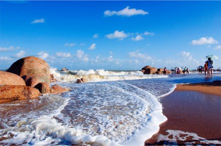 三娘灣位于欽州市南部犀牛腳鎮(zhèn)境內(nèi),距欽州市區(qū)38千米、南寧168千米、北海100千米,南臨北部灣,背倚烏雷嶺,是中華白海豚之鄉(xiāng)、電影《海霞》拍攝地。三娘灣以碧海、沙灘、奇石、綠林、漁村、海潮、椰林、中華白海豚而著稱, 2005年被評為“廣西十佳旅游景區(qū)”。有海上精靈中華白海豚,其中三娘石、鎮(zhèn)海石狗、“海霞姑娘”—三娘灣女子民兵隊、漁家旅館等景點。