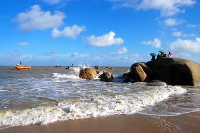 三娘灣潮被譽(yù)為“錢塘江姐妹潮”的大潮景觀,每年的7月份,欽州市政府都在景區(qū)都舉行“三娘灣觀潮節(jié)”不但可以欣賞大潮勝景,還可出海近距離觀賞珍稀的中華白海豚,同時(shí)欣賞到沙灘比基尼模特秀,另外,別具特色的沙灘背新娘等民俗節(jié)目亦將盛情上演。