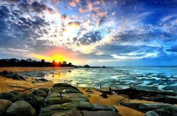 傍晚在松軟潔凈的沙灘上拾貝捉蝦,收獲一份意外的驚喜,享受自己辛勤勞動(dòng)的成果,不必?fù)?dān)心夕陽(yáng)西下,在暮色蒼茫的漁村下榻,潔凈簡(jiǎn)樸的漁家旅店是濱海月色星光下最溫馨的家。