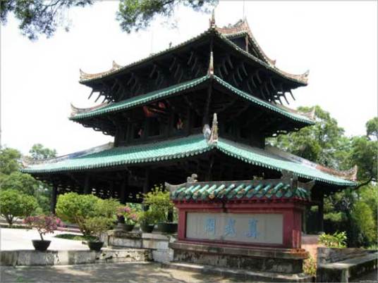 經略臺真武閣,中國道教宮觀建筑,用于奉祀真武帝以鎮(zhèn)火災。其結構采用三層檐、歇山頂、穿斗式構架,通高13.2米,面寬13.8米,進深11.2米,總面積168平方米。其采用穿斗式構架方式,把近3000根大小不一的格木構件鑿榫卯眼,斜穿直套,串聯嵌合,彼此扶持,互相制約,不用一釘一鉚,也沒有一個鐵構件,以“杠桿結構”原理組成一個穩(wěn)固的統(tǒng)一體。