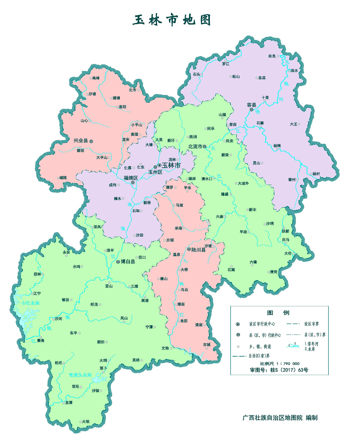 玉林市轄2個市轄區(qū)、4個縣,代管1個縣級市: