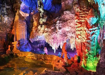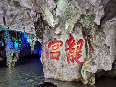 龍宮水溶洞長達15公里,為國內之冠。景區(qū)對外開放了二段,長1260米,洞內鐘乳千姿百態(tài),與北方溶洞相比更顯細致與精巧,與南方溶洞相比更顯神秘與奇特,其洞廳構造宛如神話中的龍王宮殿!暗叵吕旖、天上石林”的溶洞風景價值,是目前國內已發(fā)現(xiàn)的其它同類型景區(qū)中無以比擬的,大詩人艾青稱“大自然的大奇跡”,國畫大師劉海粟譽“天下奇觀”,全國溶洞專家感嘆“覽龍宮知天下水洞,蕩輕舟臨人間仙境”!吧讲辉诟,有仙則名,水不在深,有龍則靈”,龍宮就是這樣的人間天堂。