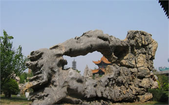 又稱龍宮小石林。位于龍宮暗河上方,里面有各種地面巖溶形態(tài)堆砌成的石頭,大小不等,形態(tài)各異,是為天然趣石園。