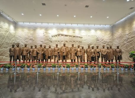 1980年1月8日,在上級黨委和新華社記者支持下,紀(jì)念館第一次較準(zhǔn)確的、科學(xué)的在會議室南墻上掛出了毛澤東、周恩來、張聞天、王稼祥、秦邦憲、 陳云、劉少奇、朱德等八人的歷史照片。