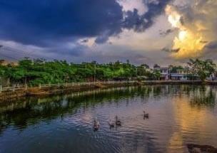 是一個(gè)集田園風(fēng)光、古村歷史文化、國防教育基地、休閑娛樂、餐飲住宿為一體的生態(tài)文明旅游地,亦是海口鄉(xiāng)村旅游的新亮點(diǎn)。其位于?谑行阌^(qū)永興鎮(zhèn)馮塘村,距海口市區(qū)26千米,約40分鐘車程,交通十分便利。園區(qū)以馮塘村為根基、以橄欖園為核心,在2500多畝的范圍里,圍繞茂密的熱帶火山雨林和繁茂生長的橄欖林,開辟出龍棲谷、橄欖園、景觀大道、古村、荷花塘等五大主題景觀。