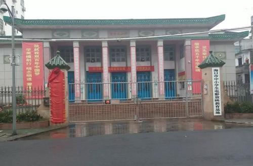 中山紀(jì)念堂為紀(jì)念民主革命先行者孫中山先生而建,位于中山街道辦事處文明西路19號(hào),民國(guó)十五年(1926年)建成,是全國(guó)最早的孫中山紀(jì)念堂。1964年重建,占地面積1500平方米,建筑面積700平方米,建筑布局為坐北朝南,呈方形,前有庭院,左右兩側(cè)各有花池1個(gè),沿7級(jí)混凝土臺(tái)階拾級(jí)而上到達(dá)主體建筑。紀(jì)念堂為綠色琉璃瓦,堂頂飛檐,正面堂檐橫匾鐫刻堂名,整體結(jié)構(gòu)為中西結(jié)合風(fēng)格,是?谑、海南行政區(qū)承辦各種重要活動(dòng)的場(chǎng)所,?谑械谝粚萌嗣翊泶髸(huì)在此召開(kāi),現(xiàn)為?谑星嗌倌晁枷氲赖陆逃娪胺庞郴。