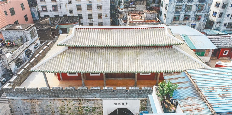 瓊山縣學宮位于府城文莊路5號,據(jù)清朱為潮篡《瓊山縣志》載:文廟始建于宋代,原設在海口浦,歷代多次遷移,最后置于府城南門和護城河北邊300米處,即今遺址。 明洪武四年(1371年),瓊山知縣李思迪遷建于府城東北東坡書院內(nèi)(即今蘇公祠)。九年,知縣陳概又遷建于府城南郊。弘治十一年(1498年),廣東按察司副使陸淵遷建于府學之西,即今遺址。遷建后的縣學宮居于城內(nèi)鬧區(qū),靠近府署,接鄰府學宮,方便了生員習禮和各種慶典活動。 清光緒二十三年(1897年)秋,瓊山名士林之椿、曾對顏、粘世王召、王國棟、柯玉珊、王駿聲、孫生英等人發(fā)起重修。 瓊山縣學宮原有后殿、大成殿、東廡、西廡、欞星門、丹墀等建筑,十分雄偉壯觀,為瓊山縣歷代儒學教育機構,占地面積最大時“直500尺,橫128尺,面積64000方尺”。學宮現(xiàn)僅存大成殿,面闊5間,進深3間,坐南朝北,重檐歇山頂。梁架結構為七架木結構式,梁檁之間雕刻精美的龍獅、蓮花、卷云、紋刻,莊重典雅。2013年,瓊山縣學宮大成殿重修完成,現(xiàn)為海南省重點文物保護單位。