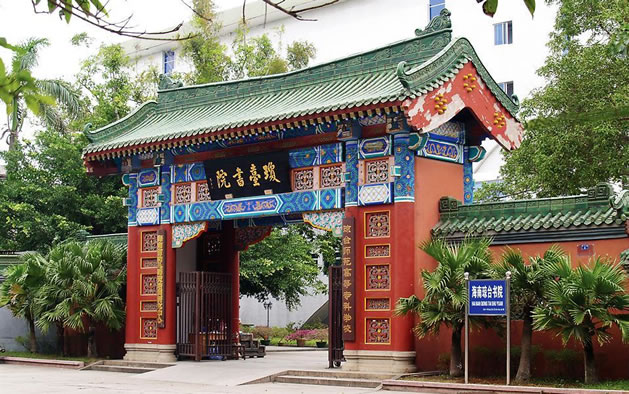 瓊臺書院位于府城中山路8號,相傳是后人為紀念海南第一才子、明朝大學士丘濬而建。始建于清康熙四十四年(1705年)據(jù)傳由于丘濬號瓊臺,人稱瓊臺先生,故書院由此得名。 書院現(xiàn)今是瓊臺師范學院的校址,其主樓奎星樓高二層,綠瓦、紅廊、白墻,是一座具有民族特色的磚木結構建筑,至今保存完好。樓內(nèi)雕梁畫棟,異常別致;樓前綠樹成蔭,環(huán)境秀麗雅靜。著名的粵劇、瓊劇《搜書院》的故事就發(fā)生在此,瓊臺書院隨著《搜書院》而蜚聲海內(nèi)外。