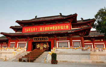 龍五爺財(cái)神殿位于三亞南山龍脈財(cái)穴之地,供奉著南海龍王第五子——圣衍,即“天下第一財(cái)神”——龍五爺。龍五爺財(cái)神殿由三個(gè)部分組成:一是招財(cái)大殿,開(kāi)示信眾招財(cái)進(jìn)寶;二是地宮財(cái)庫(kù),護(hù)佑信眾守財(cái),護(hù)財(cái);三是。五爺萬(wàn)佛閣,護(hù)佑信眾福祿傳世,富貴傳家。龍五爺財(cái)神招財(cái)大殿,開(kāi)示信眾如何求財(cái)?shù)姆ㄩT。在龍五爺財(cái)神殿的大殿之上,有八根財(cái)柱,分別代表了龍五爺開(kāi)示眾生如何正當(dāng)求財(cái)?shù)陌舜蠓ㄩT,只有依五爺開(kāi)示,樹(shù)立了正確的八大財(cái)富觀,才能求財(cái)如意。