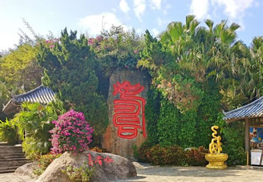 長(zhǎng)壽谷,也叫鰲山壽谷,位于南山東麓,其地貌依攀山勢(shì),呈谷狀縱伸。谷線全長(zhǎng)2300米,堪稱熱帶雨林奇觀。其間鳥(niǎo)鳴不斷、溪水長(zhǎng)流、林木郁郁蔥蔥、巖石突兀奇特。設(shè)計(jì)者巧用天然形勝,從不同角度,以“流動(dòng)”和“靜止”的狀態(tài)揭示著傳統(tǒng)“壽”文化的內(nèi)核,融匯福壽文化于熱帶雨林奇觀。其主要景觀包括:“無(wú)量壽佛”、“流水尊者”;著名書法家啟功先生所書之“壽比南山”巨大石刻、“百歲階”、“賀壽堂”等,無(wú)一不體現(xiàn)中國(guó)傳統(tǒng)文化中增福添壽的美好祈福。是老年游客必游覽駐足的景點(diǎn)。