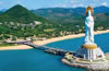 南山文化旅游區(qū)面朝南海,坐落在中國(guó)海南島南端的熱帶濱海城市——三亞市的西南20千米處,是中國(guó)最南端的山。南山歷來被稱為吉祥福澤之地。據(jù)佛教經(jīng)典記載,救苦救難的觀音菩薩為了救度蕓蕓眾生,發(fā)了十二大愿,其中第二愿即是“常居南海愿”。唐代著名大和尚鑒真法師為弘揚(yáng)佛法五次東渡日本未果,第五次漂流到南山,在此居住一年半之久并建造佛寺,傳法布道,隨后第六次東渡日本終獲成功。日本第一位遣唐僧侶空海和尚也在此登陸中國(guó),駐足傳法。
