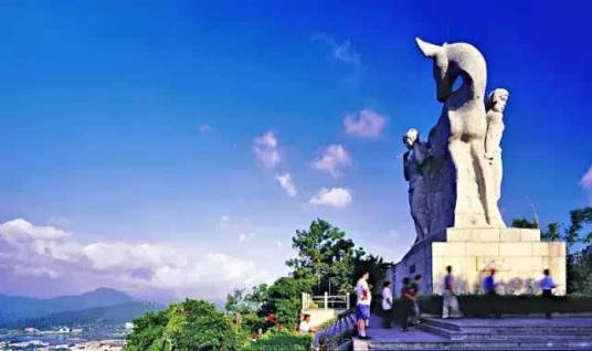 鹿回頭山頂公園位于三亞市南部3千米的海邊小山上,伸向南海、狀似坡鹿。這里三面臨海,四季山青,以其美麗的神話傳說聞名于世。主峰海拔275.1米。鹿回頭山頂已建設(shè)成一座美麗的山頂公園,并根據(jù)這個(gè)美麗的傳說在山上雕塑了一座高12米,長(zhǎng)9米,寬4.9米的巨型雕像。三亞市也因此被人們稱為“鹿城”。