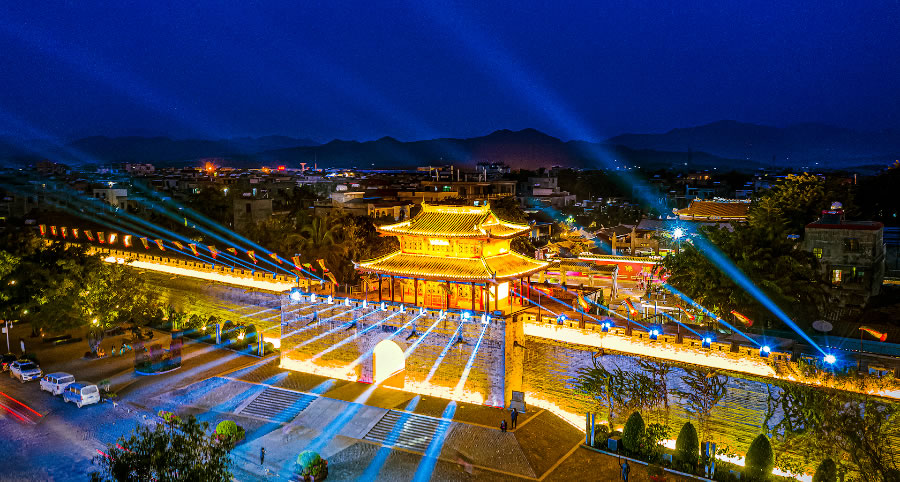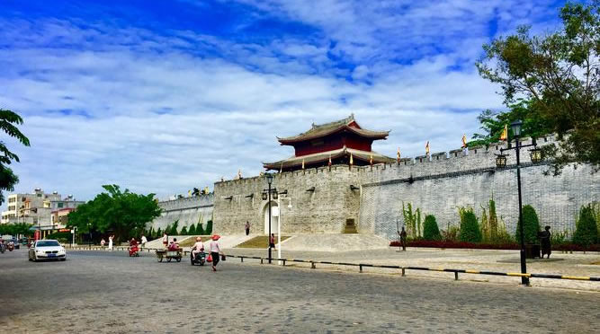 崖州古城(墻) 明至清代,位于崖州區(qū)內(nèi)。據(jù)《崖州志》(郭沫若校訂本)記載:崖州古城始建于宋,原系土城,南宋慶元四年(1198年)砌磚,紹定六年(1233年)開東、西、南三門,明洪武十八年(1385 年)擴(kuò)建城址,復(fù)加磚砌,城門上建敵樓,外挖護(hù)城壕,明正統(tǒng)元年(1436年)立吊橋,清道光二十一年(1843年)改南門為“文明門”。1966年前后部分城墻被毀,F(xiàn)存城墻南門“文明門”和距“文明門”西面800米處的敵樓城墻,城磚側(cè)面有“官”與“吉”字印款。西北角的護(hù)城河保存較為完整,有磚砌拱橋一座。