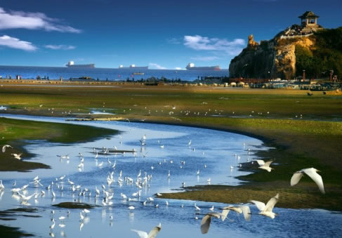 北戴河景區(qū)地處河北省秦皇島市北戴河區(qū)東部沿海,東北至鴿子窩公園,是著名的觀鳥勝地,被譽為"觀鳥的麥加"。這里有6600多公頃森林,50多畝濕地,戴河、恒河等入?谛纬傻哪酁a湖以及滯緩的河道,被國際濕地保護(hù)公約命名為"北戴河濕地",并受到國家保護(hù)。