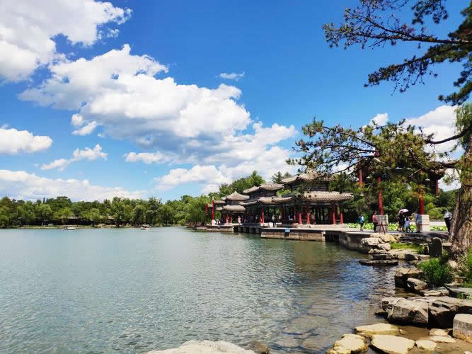 松鶴齋寓意“松鶴延年”,供太后居住,建于乾隆年間;萬壑松風是清帝批閱奏章和讀書處,是宮殿區(qū)與湖區(qū)的過渡建筑,造型與頤和園的諧趣園類似;東宮在宮殿區(qū)最東面,原為清帝舉行慶宴大典的場所,后毀于戰(zhàn)火。