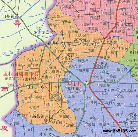 鎮(zhèn):孟村鎮(zhèn)、辛店鎮(zhèn)、高寨鎮(zhèn)、新縣鎮(zhèn)