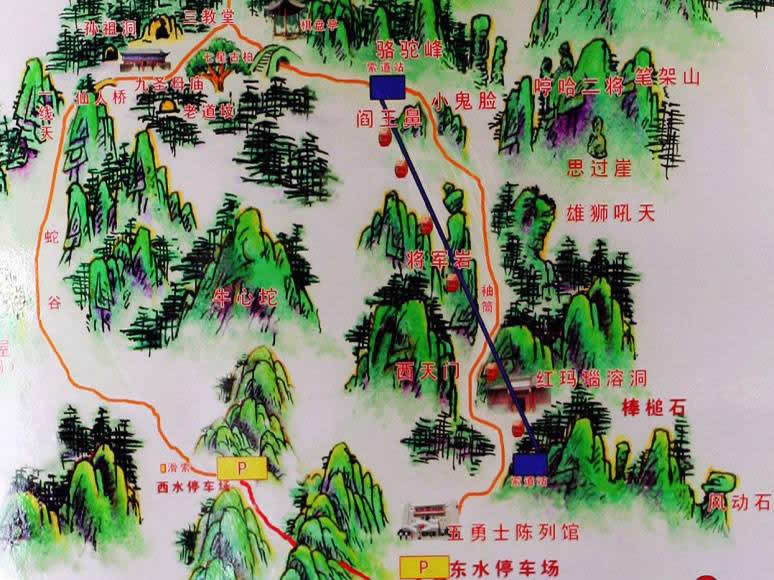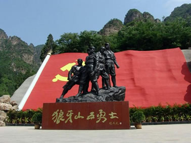 狼牙山原名郎山,因漢武帝時太子劉據(jù)之子為躲避“巫蠱之獄”避難于此而得名。西漢武帝晚年多病,疑其左右為巫蠱(埋木偶人,詛咒害人)所致,涉及皇后、太子、公主等親屬,太子劉據(jù)自殺,其子遠遁該山,故名。郎山下原有西晉太康元年(280)詔錫郎山君(漢武帝孫)及其子觸鋒將軍父子法祀碑與郎山君祠、觸鋒將軍廟。郎與狼諧音,亦名狼山。因山峰聳立,危峰參差迭起似狼牙,又稱狼牙山,為古易州十景和古城保定八景之一的“狼山競秀”。山上不但有風動石、仙人橋、南天門等自然奇觀,還有老君堂、三教堂、蠶姑廟等眾多的文物古跡。狼牙山五勇士之壯舉,名聞海內(nèi)外,為國家森林公園和愛國主義教育基地,國家紅色旅游熱線景區(qū)。緬懷先烈,銘記歷史,愛我中華,狼牙山風景區(qū)決定每年9月25日狼牙山五勇士(馬寶玉、葛振林、宋學義、胡德林,胡福才)跳崖紀念日當天免費對游客開放!拔∥⊙嗌礁撸瑸t瀟易水寒。英雄五壯士,威震狼牙山。”1941年9月25日五勇士為了掩護部隊撤離他們面對步步逼近的日偽軍,寧死不屈,毀掉槍支,義無反顧,縱身跳下數(shù)十丈深的懸崖。
