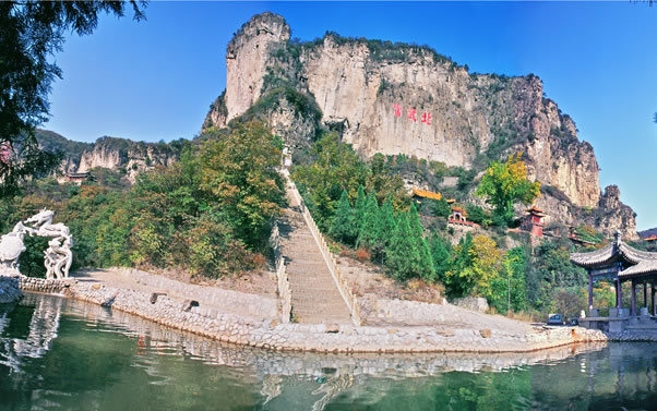 抱犢寨風(fēng)景名勝區(qū)是國家AAAA景區(qū),位于河北省石家莊市鹿泉市境內(nèi),距石家莊市16公里,距首都北京288公里。抱犢寨,舊名抱犢山,古名萆山,是一外集歷史人文和自然風(fēng)光為一體的名山古寨。它東臨華北平原,西接太行群巒,一峰突起,崢嶸雄秀,四周皆是懸崖絕壁,遠(yuǎn)望猶如巨佛仰臥,眉目畢肖。山頂平曠坦夷,有良田沃土660畝,土層深達(dá)66米,異境別開,草木繁茂,恍如世外桃源。有“天下奇寨”、“抱犢福地”、“全國最大山頂園林”等美譽(yù)。其景點(diǎn)均集中在寨頂平臺(tái)之上,有全國最大的山頂門坊南天門、道教宮觀金闕宮、全國最大的山頂?shù)叵率裎灏倭_漢堂、華夏第一龍壁千龍壁以及牛郎織女故事的發(fā)祥地——牛郎織女家、天池、天堂街、環(huán)山長城等諸多景點(diǎn);公元前204年漢將韓信曾于此萆山設(shè)伏、背水一戰(zhàn)、大破趙軍,因而寨頂建有韓信點(diǎn)將臺(tái)和韓信祠。金末元初,金恒山公武仙曾于此山屯兵建寨,抗擊蒙古軍隊(duì)。在道教典籍中,該山被列為“北岳佐命”,明代著名道士張三豐也曾游歷此山,留下了“三豐派”一支脈,至今相傳不絕,宮觀猶存。近年來,景區(qū)大力實(shí)施升級(jí)改造工程,重修了登山路;開發(fā)建設(shè)了以音樂噴泉、讀月臺(tái)、天井飛瀑、彩虹谷、思凡亭等景點(diǎn)為主的鹿隱源生態(tài)新區(qū)。并增加了具有鮮明特色的少數(shù)民族歌舞演出,景區(qū)魅力倍增。