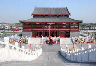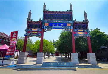 盛樂坊:“盛樂”取自《禮記.月令》,命有司,為民祈祀山川百源,大雩(yu)帝,用盛樂。“雩”,是古代的一種祭禮,說的是古代每到夏季的第二個月,用盛大的舞樂隊伍祭祀天地及山林川澤之神,祈求風(fēng)調(diào)雨順,五谷豐登,具有節(jié)日的氣氛。這個牌坊與對岸的大戲樓遙相輝映。