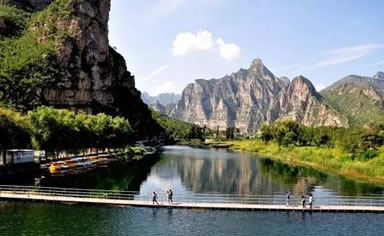 拒馬河是河北省內惟一一條長年不斷的河流。拒馬河景區(qū)不僅風光秀麗,氣候宜人,而且有眾多的文物古跡與自然風光。區(qū)內有沙蟒攔路、石猴戲水、石門頓開、天橋拱立、懸崖棧道、孩童鬧學等“下莊八景”。由于得天獨厚的優(yōu)勢條件,該景區(qū)建起了眾多的賓館、飯店,有一首打油詩這樣寫道“徜徉翡翠中,夜伴歌舞聲,星際蕩葉舟,脫塵生戀情”勾勒出一幅美好畫卷,如詩如畫的拒馬河景區(qū)便成了人們觀光娛樂勝地和食宿基地。
