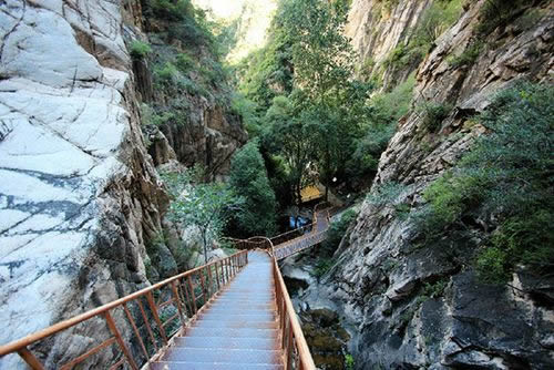 被譽為“天下第一峽”的百里峽是野三坡獨具特色的景區(qū)之一。在“雙崖依天立,萬仞從地劈”的百里“構造嶂谷”中,不僅有“老虎嘴”“一線天”“回首觀音”“天生橋”,還有涌泉飛瀑,跌宕聲聲的峽谷溪流和生性好動的小松鼠及山巔枝頭的鳥鳴。生態(tài)環(huán)境原始自然。峽谷內旅游設施與自然相協(xié)調,安全環(huán)保。置身其谷,步游路隨山峰而轉,溪水繞游路而行,山水相依,植被茂密,空氣清新,世間無比。游在其中,頭頂絕壁萬仞、藍天一線;腳踏鵝卵石甬路,還可足療保;路邊泉水叮咚、碧水清潭;身旁高山飛瀑、澗流潺潺;崖壁上灌木成林、青檀倒掛懸,獨根草、野海棠和羊齒蘭猶如墨彩涂于壁間,密如綠毯。