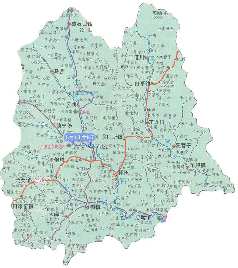 鎮(zhèn):赤城鎮(zhèn)、田家窯鎮(zhèn)、龍關(guān)鎮(zhèn)、雕鄂鎮(zhèn)、獨(dú)石口鎮(zhèn)、白草鎮(zhèn)、龍門所鎮(zhèn)、后城鎮(zhèn)、東卯鎮(zhèn)
