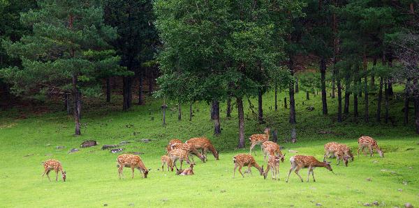 金山鹿苑位于鶴伊公路75公里處,距離金林區(qū)局址7公里處,占地面積764公里。這里溪流淙淙、綠草如茵,群山環(huán)抱、景色怡人,歐陸風(fēng)韻盡顯其中,酷似天然的高爾夫球場。現(xiàn)有梅花鹿、馬鹿等珍貴鹿種。是AAA級國家旅游景區(qū)。 金山鹿苑之所以稱為天然鹿苑,主要是這里采用人工飼養(yǎng)與自然放牧相結(jié)合的半牧式養(yǎng)殖方式飼養(yǎng)鹿群,既保護了鹿種的天然野性,又提高了鹿種的繁殖能力和經(jīng)濟價值。金山鹿苑已成為我區(qū)種鹿繁育、技術(shù)服務(wù)推廣、鹿產(chǎn)品精深加工、銷售、旅游、科研開發(fā)基地。 金山鹿苑其景色優(yōu)美,每年都吸引大量游客前來旅游觀光。2002年中央“心連心”藝術(shù)團曾在此設(shè)立分會場進行慰問演出。是歷屆中國·伊春市小興安嶺森林節(jié)必選觀光路線,曾是伊春旅游形象片《綠色伊春》和伊春市歌《林都伊春》主要拍攝場地。2009年接待過35個駐我國大使、參贊和夫人,國內(nèi)、國際聲望遠播。