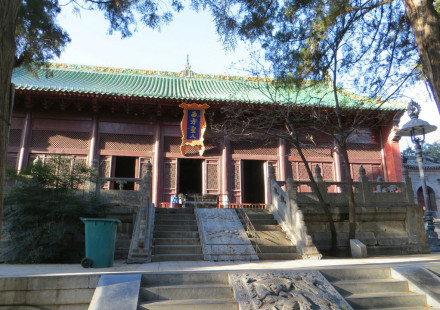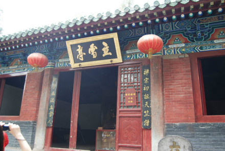 達摩亭,又稱立雪亭,建于明代,1980年重新修繕。相傳這里是二祖慧可侍立在雪地里向達摩祖師斷臂求法的地方。殿內神龕中現(xiàn)供奉達摩祖師的銅坐像,是在明嘉靖十年(1531年)所鑄。兩側分別是二祖慧可、三祖僧燦、四祖道信、五祖弘忍。龕上懸掛的匾額“雪印心珠”四字為清乾隆皇帝御筆親題,字體遒勁,氣勢豪邁。此殿現(xiàn)為寺僧日常做佛事的場所。東配殿位于達摩亭西側,于1983年重建,殿內有“阿彌陀佛”的石像和“達摩面壁影石”。
