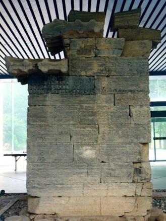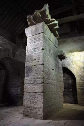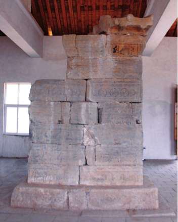 觀星臺南側(cè)的周公測景臺是古代祖先測量日影、驗證時令季節(jié)的儀器。分臺座和臺柱兩部分,臺座叫圭,臺柱叫表。夏至日這一天的正午,在測景臺的周圍看不到表的影子,所以,稱此臺為無影臺。又因為無影,我們的祖先就認(rèn)為這里就是地中。