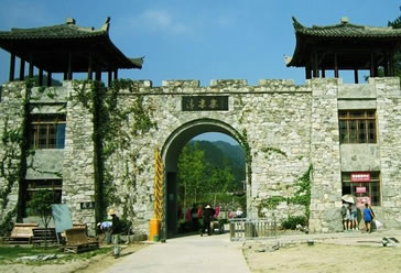 捷慶門:這是為紀念花木蘭登清涼寨修建的一個牌坊。唐太宗年間,木蘭女扮男妝,替父從軍,十年征戰(zhàn),得勝回朝,謝絕天子官封尚書郎的賞賜,馳千里足回歸故里。途經(jīng)清涼寨時,適逢雨過天晴,天空彩虹高掛,雄鷹翱翔,山間云霧繚繞,鳥語花香。情不自禁地躍馬揚鞭,直奔清涼寨頂峰。站在海撥800余米的古寨之顛。極目遠眺,湖光山色,盡收眼底,田園村舍,宛若身旁。山由衷發(fā)出荊楚名岳清涼寨的感嘆。