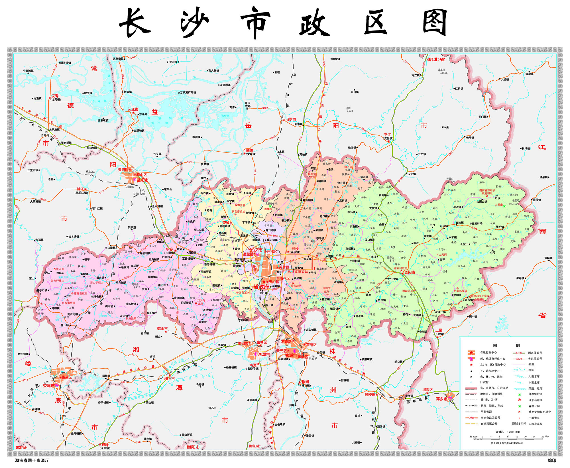 長沙轄6個(gè)區(qū)、1個(gè)縣、代管2個(gè)縣級市: