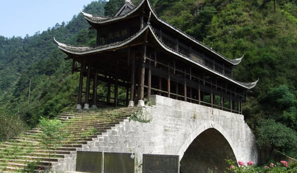 定遠(yuǎn)橋 定遠(yuǎn)橋位于綏寧縣關(guān)峽鄉(xiāng),是綏寧縣知縣范成龍捐獻(xiàn)自己的俸祿銀子于康熙二十三年(1684年)修建。橋長(zhǎng)一十二丈六尺,寬二丈六尺,高五丈六尺,單孔,半圓拱。橋面用青石鋪面,青石已被磨得油亮發(fā)光,橋頂屋架木瓜、懔條緣皮、青瓦翹檐、瓦頭潔白,橋依山而建,古樸威嚴(yán);亭為杉木架構(gòu),卯榫嵌合,不用一釘,圓石為礎(chǔ),巨木為柱,片板為欄,長(zhǎng)方為座,可供憩息,可避風(fēng)雨。由于這里的險(xiǎn)關(guān)隘口天然生成,為歷代兵家要塞,故名關(guān)峽;現(xiàn)為湖南省保護(hù)文物; 橋下的“蘭溪”溪水清澈見底,水流湍急,水似一把利刃,把猴子山一劈兩開穿山而過(guò)。 |