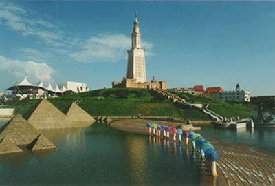 景區(qū)依山傍水,滿目青蔥,歐洲、東方、西亞園藝風(fēng)格的主題園林更添了公園的靚麗和嫵媚;100多個世界名勝古跡各占地勢,構(gòu)筑了厚重的人文歷史,彰顯了濃郁的異國情調(diào),德國新天鵝城堡、埃及亞歷山大燈塔等大比例異國建筑氣勢恢宏,再現(xiàn)了古代人類的驚人創(chuàng)舉;文明山、文明湖、國際商業(yè)街、歐洲風(fēng)情街、牛仔街、日本園、東南亞水鄉(xiāng)等一道道風(fēng)姿各異、絢麗多彩的人文景觀,新開人間奇境,再創(chuàng)人類夢想。