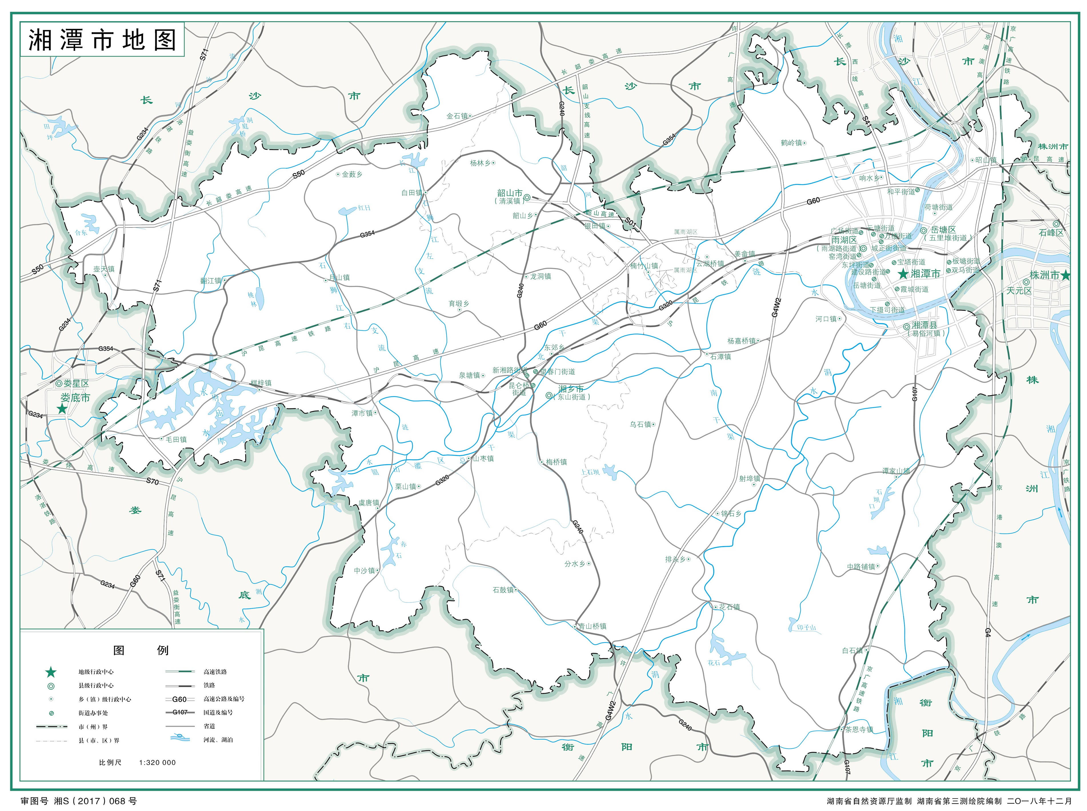 湘潭市轄2個(gè)市轄區(qū)、1個(gè)縣,代管2個(gè)縣級市: