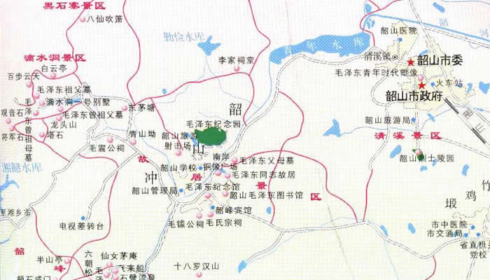 韶山是毛澤東同志青少年時期生活、學習、勞動和從事革命活動的地方。新中國建立以來,這里一直受到黨和國家的關心與重視,在黨的領導下,韶山經(jīng)過韶山人民半個多世紀的艱苦創(chuàng)業(yè),已由一個偏僻落后的山村,變?yōu)楣まr(nóng)業(yè)迅速發(fā)展,教育、科技、文化、衛(wèi)生水平普遍提高,紀念景點眾多、服務設施完備的國家級風景名勝區(qū)。管理機構(gòu):湖南省韶山管理局,由中共湖南省委派駐,正廳級,負責韶山紀念地和風景區(qū)的宣傳、接待、建設、保護、管理工作。韶山市,縣一級政府,1990年成立,轄區(qū)210平方公里。韶山每年接待海內(nèi)外游客100萬人次以上,是中國優(yōu)秀文明旅游城市,全國愛國主義教育示范基地;是訪湘人士首選和必選的旅游目的。韶山市市花為杜鵑花,杜鵑花代表著革命與幸福。