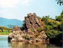 那些打漁撈蝦的人,在雨過天晴的時候,遠遠地會看到一個漂亮的女子跪坐在那塊石頭上,梳洗她那又長又黑的頭發(fā)。走近去一看,又沒有了。大家都曉得她就是炎帝的妃子,把妃子跪坐過的石頭叫做“胭脂石”。
