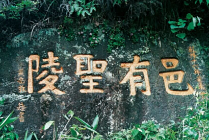 邑有圣陵位于炎陵故道,橋頭嶺下官壟口道旁,石壁上鐫刻乾隆十六年路碑“邑有圣陵”四個大字。炎帝去世后,人們把他安葬在鐘靈毓秀的“長沙茶鄉(xiāng)之尾”。幾經周折,終于來到一個嶠陽嶺的地方。這里“四面嶄絕,鳥道羊腸”。站在嶠陽嶺上,舉目南望,只見群山環(huán)抱之中,有一塊平展開闊的原野。洣水三回九折,穿嶂過峽,奔騰而來。原野南端,層巒疊翠,虬木森森,煙云出沒,氣象萬千。認為鹿原陂就是一塊富庶之地,至尊之地,文明發(fā)祥之地。辛勞一生的炎帝,應該有這樣一塊安息之地。