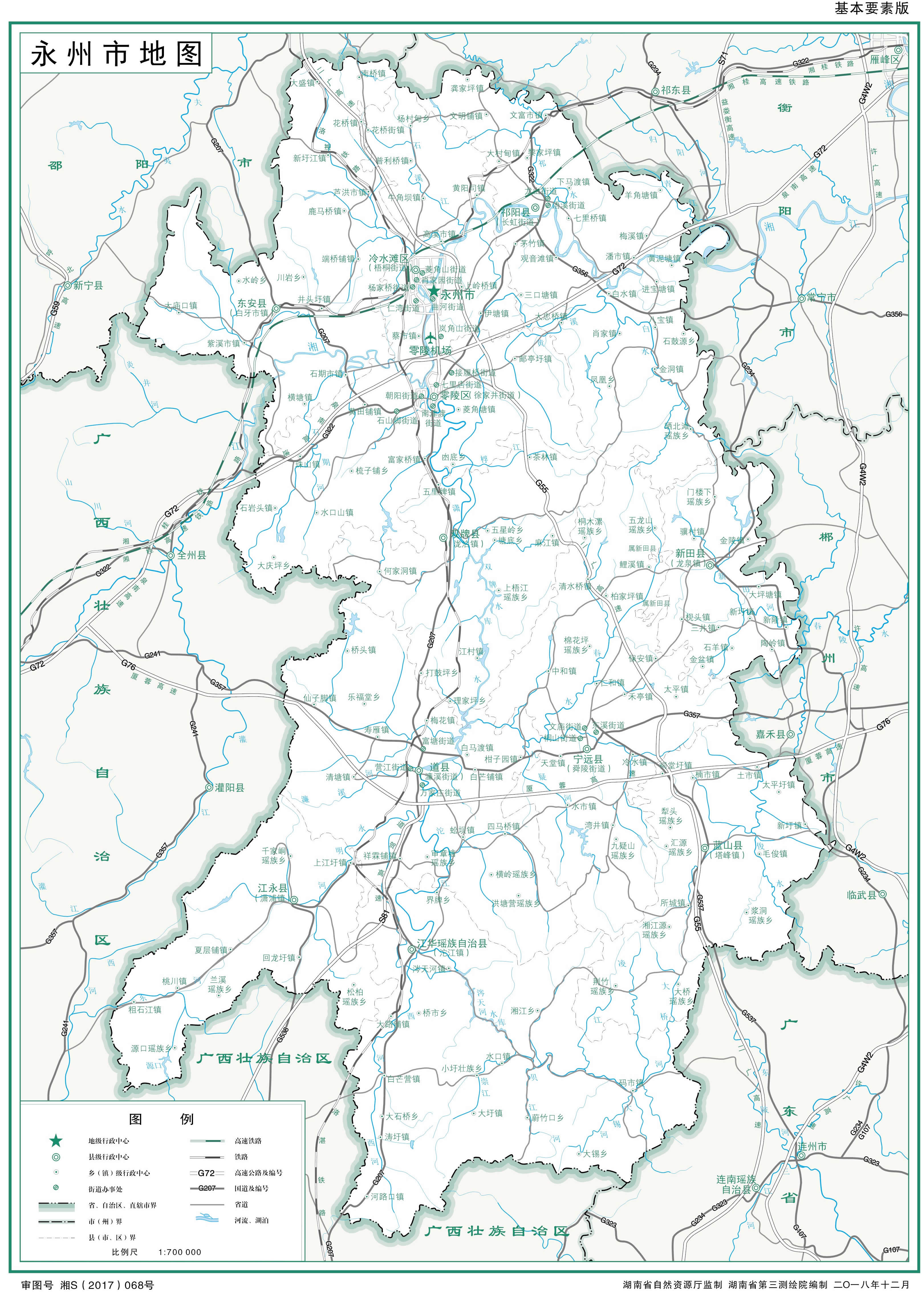 永州市轄2個市轄區(qū)、8個縣、代管1個縣級市: