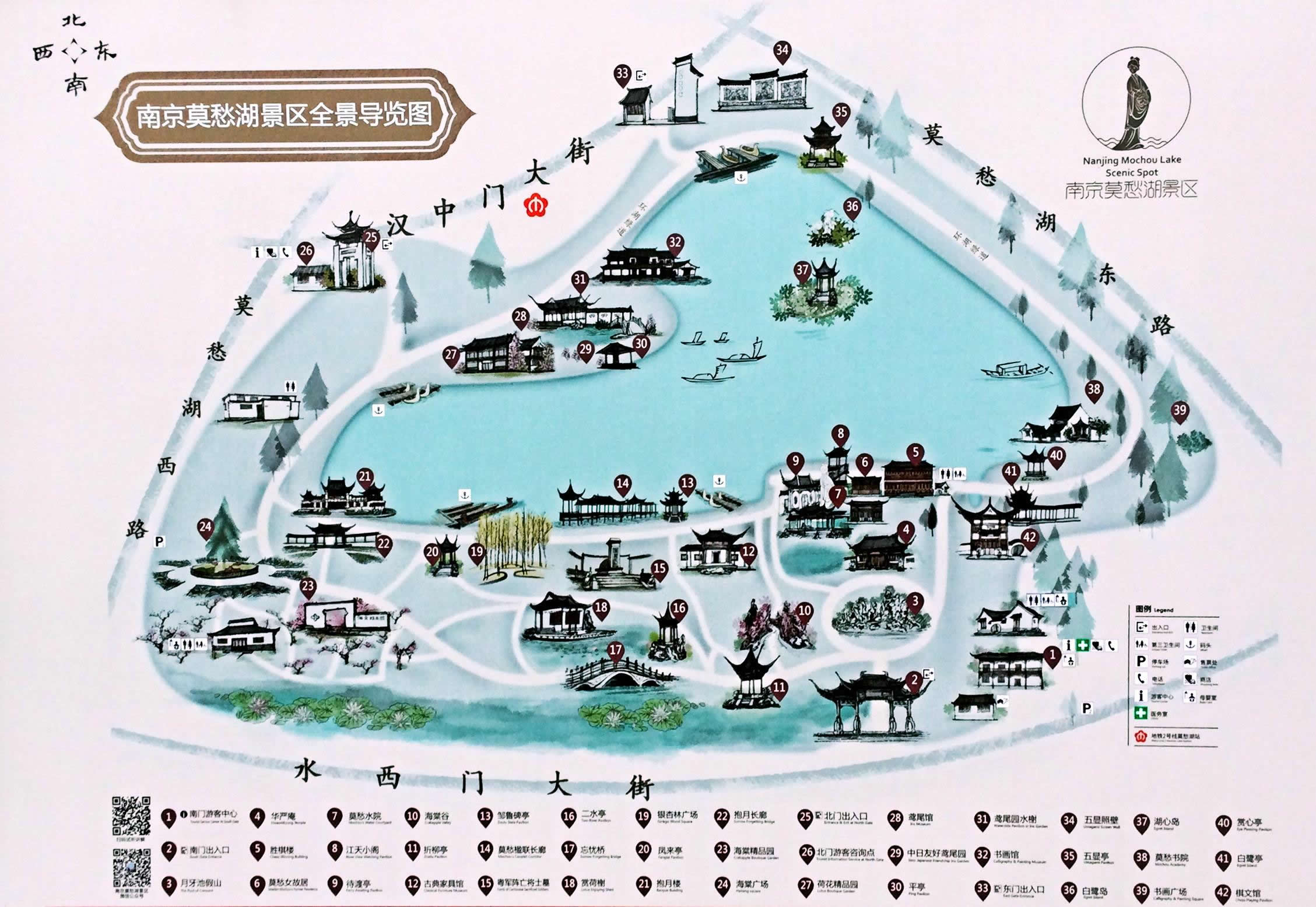 莫愁湖屬于淺水湖泊,由長江、秦淮河沖積平原的低洼處積水而成,原是秦淮河入江口河槽,因泥沙淤積而成湖。南北長約680米,東西寬約770米,湖面標(biāo)高4米,主要功能為景觀水域和非直接接觸的娛樂用水,已無調(diào)蓄能力。莫愁湖景區(qū)內(nèi)有莫愁女故居、郁金堂、蘇合廂、勝棋樓、華嚴(yán)庵、莫愁水院、棋文館、粵軍陣亡將士墓、抱月樓、海棠精品園、中日友好鳶尾園等主要景觀。