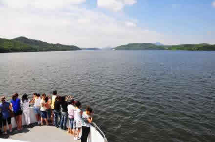 天目湖旅游度假區(qū),位于蘇、浙、皖三省交界處的江南歷史名城,溧陽(yáng)市境內(nèi),距市區(qū)僅八公里。天目湖東臨煙波浩渺的太湖,北望工業(yè)發(fā)達(dá)的常州,西接六朝古都南京,南連蜿蜒起伏的天目山脈。天目湖旅游度假區(qū)開(kāi)發(fā)建設(shè)于一九九二年四月,整個(gè)度假區(qū)的范圍為三百平方公里,其中包括沙河和大溪兩座國(guó)家級(jí)大型水庫(kù)。這兩大水庫(kù)地處天目山的余脈,從空中鳥(niǎo)瞰恰似兩顆明珠鑲嵌于溧陽(yáng)大地。天目湖湖水來(lái)源于蘇、浙、皖三省交界的南山地區(qū),二百五十平方公里的河澗水匯集成湖,總庫(kù)容量為三億立方米,總長(zhǎng)度為十三公里,水庫(kù)最深處為二十八米,平均深度為十米左右。湖區(qū)陸地部分為安山巖和石灰?guī)r,地形較為低緩。湖區(qū)群山環(huán)抱,湖水清冽。湖岸蜿蜒曲折,湖內(nèi)布滿大小島嶼。區(qū)內(nèi)奇花異草,色彩繽紛,野生動(dòng)物,棲息繁衍,形成完整與和諧的生態(tài)系統(tǒng)。