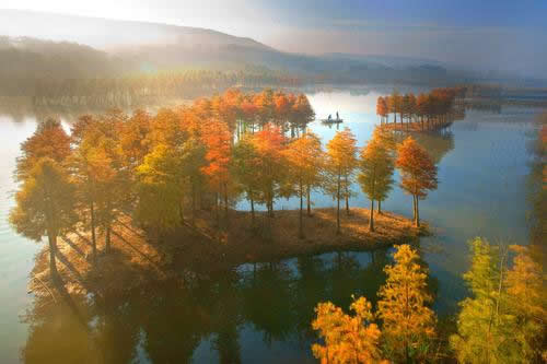 有山有水,山水相連,那才是旅游佳境。鐵山寺年降雨量在1000毫米以上,而山上的石頭又多為玄武巖,水順著石頭向山下流。涓涓細(xì)流匯集山澗,直奔天泉湖。天泉湖水域9平方公里,湖面開闊,輕霧迷朦。湖面四周層層山巒,近山濃翠,湖光山色交相輝映。湖水能見度可達(dá)十?dāng)?shù)米,常說水至清則無魚,這話用在天泉湖可謂相差甚遠(yuǎn)。天泉湖有百種魚,國家一級保護魚類“中華鱘”在天泉湖中試養(yǎng)成功。這里還建有大型養(yǎng)殖基地,盛產(chǎn)銀魚、鰱魚等。