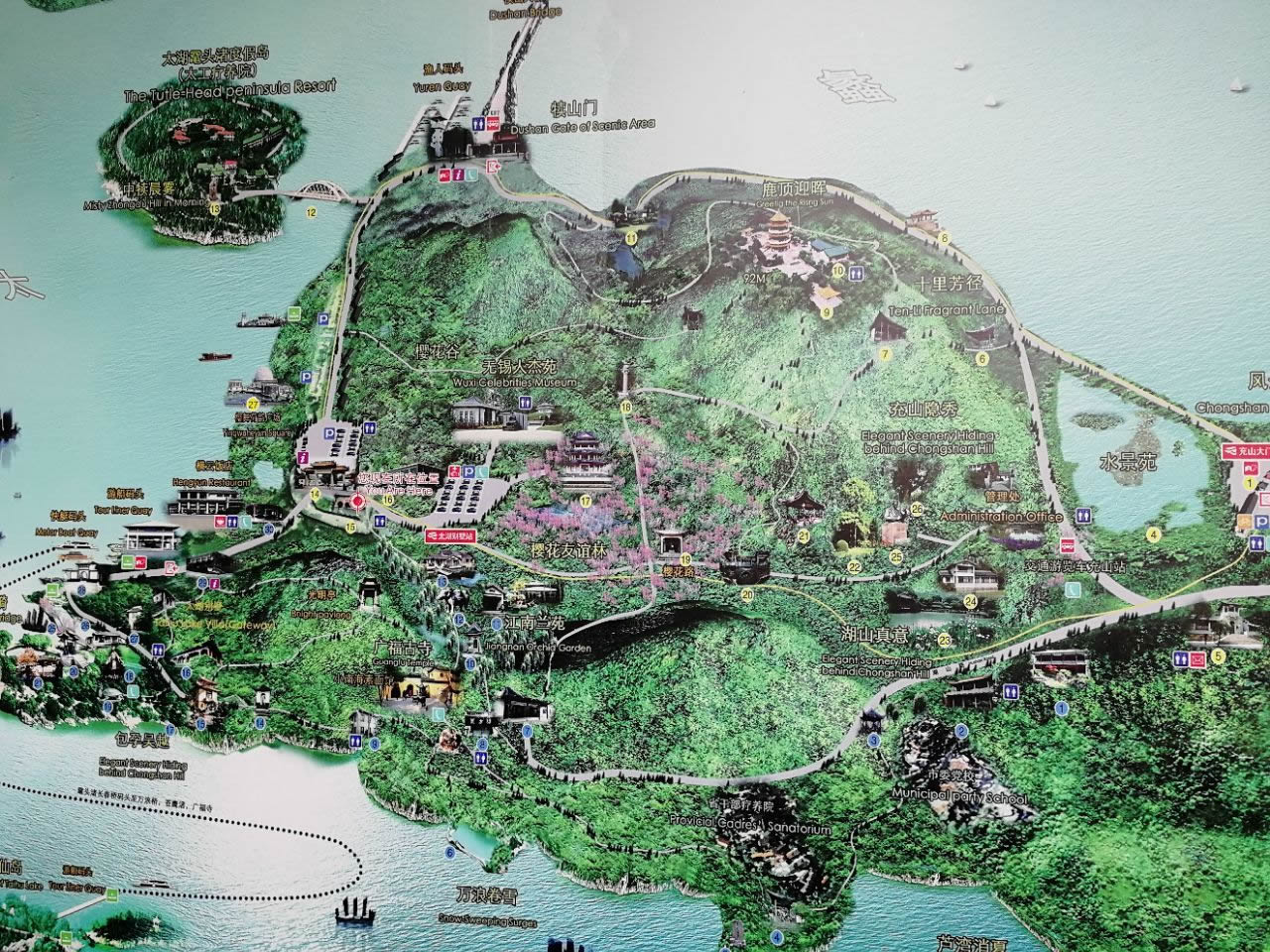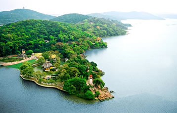 原稱三山島,位于黿頭渚西南2.6千米的湖中,有“三山映碧”譽(yù)稱。島上建有三山道院,有會(huì)仙橋、天街、靈霄宮、天都仙府、月老祠、大覺灣等建筑。玉宇瓊樓,古樂陣陣,室內(nèi)布置瑰麗雄奇,神像生動(dòng),其中玉帝塑像高達(dá)18米。