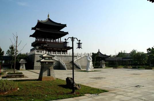 潯陽樓占地面積2800平方米,主樓建筑面積1000平方米,為仿宋建筑風格,花崗巖石料臺基,九脊頂,外三層內(nèi)四層,高21米。潯陽樓之名最早見之于唐代江州刺史韋應(yīng)物的詩中!端疂G傳》小說中的宋江題反詩、李逵劫法場等故事使?jié)£枠敲胩煜。潯陽樓的設(shè)計,參考了《清明上河圖》和《水滸傳》刻本中的潯陽樓插圖!皾£枠恰比齻大字,為趙樸初所題。