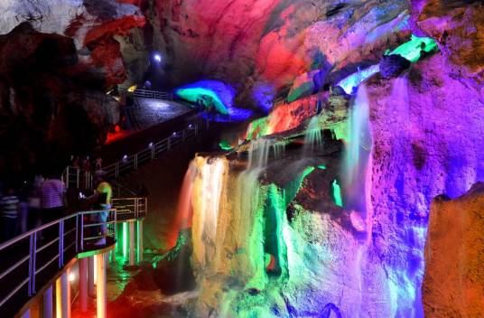 洞內(nèi)常年恒溫18度冬暖夏涼。洞內(nèi)景點(diǎn)多達(dá)一百余個(gè),如:天堂大廳、童子拜觀音、千丘梯田、倒柳垂楊、許愿池、回龍廳等。最為壯觀的是洞內(nèi)的洞天飛瀑,它高九米寬七米,天然瀑布水從九米高的上空直奔洞池,濺起無(wú)數(shù)水花,聲勢(shì)浩大聲撼震天,為此洞一絕。清風(fēng)、怪石、流泉、飛瀑被稱(chēng)為“洞中四絕”。