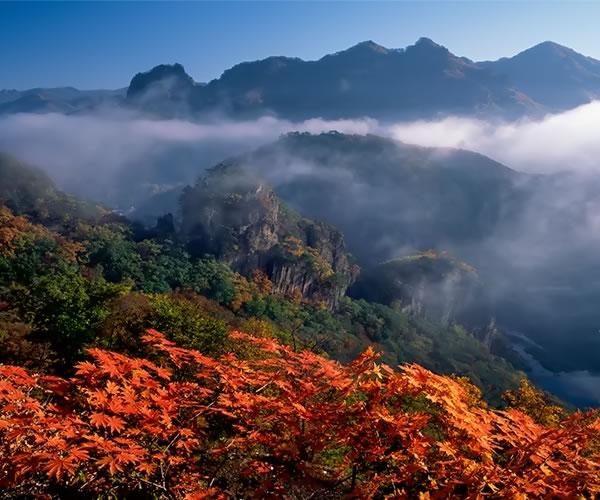 關(guān)門山位于遼寧省本溪縣南部,自古就有“東北黃山”、“東北桂林”之美譽(yù)。因雙峰對峙,一闊一窄,一大一小,其狀如門,故稱關(guān)門山。