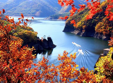 月臺子景區(qū)是主要的楓葉觀賞區(qū),每年本溪都開楓葉節(jié)。楓葉節(jié)是本溪走向全國、走向世界的橋梁,是本溪旅游事業(yè)蒸蒸日上的窗口。而關(guān)門山紅葉更是倍受贊譽(yù),每逢秋季,萬山紅遍層林盡染,紅紅火火的楓葉也會讓您的思緒隨之蕩漾,讓您不由得想起這樣一首詩:蕭蕭淺絳霞初碎,槭槭深紅雨復(fù)燃,染得千秋林一色,還家只當(dāng)是春天。伴隨著詩的優(yōu)美,我們到了月亮灣。2000年7月,我國著名的歌唱家彭麗媛曾經(jīng)到此拍攝音樂電視《世紀(jì)春雨》,這首歌曾在MTV大賽中榮獲金獎(jiǎng),大家隨著看到的就是森林浴場,您可以漫步林中,在石桌上小憩,在秋千上放歌,尋找兒時(shí)的樂趣。