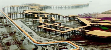 棧橋曲折綿長(zhǎng)與海相接、與天相連,像一艘大船正要揚(yáng)帆起航。游客漫步于上觀賞兩側(cè)的紅灘綠葦、聆聽(tīng)候鳥(niǎo)的百囀千聲、感受大海的波瀾壯闊,仿佛乘舟依水而行,每每流連忘返。身臨其境的讓人感受到“落霞與孤鶩齊飛,秋水共長(zhǎng)天一色”的唯美意境。
